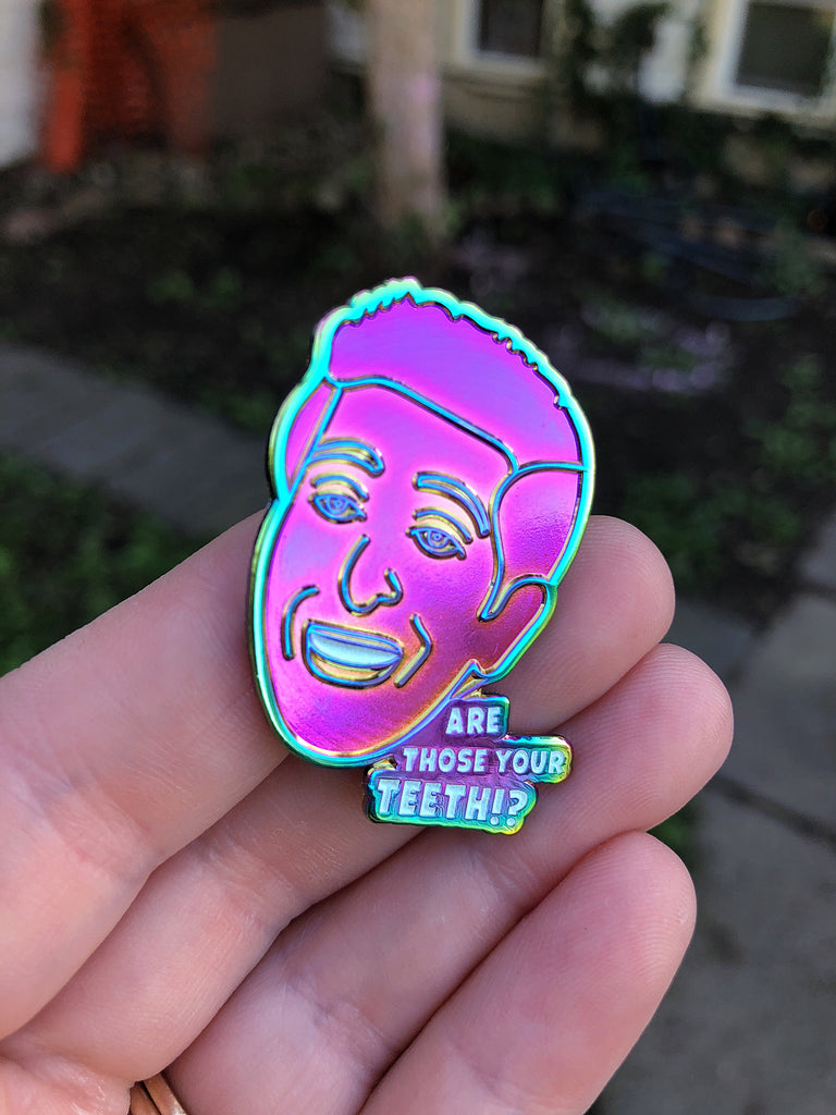 Ross- Are those your teeth?! Rainbow Enamel Pin