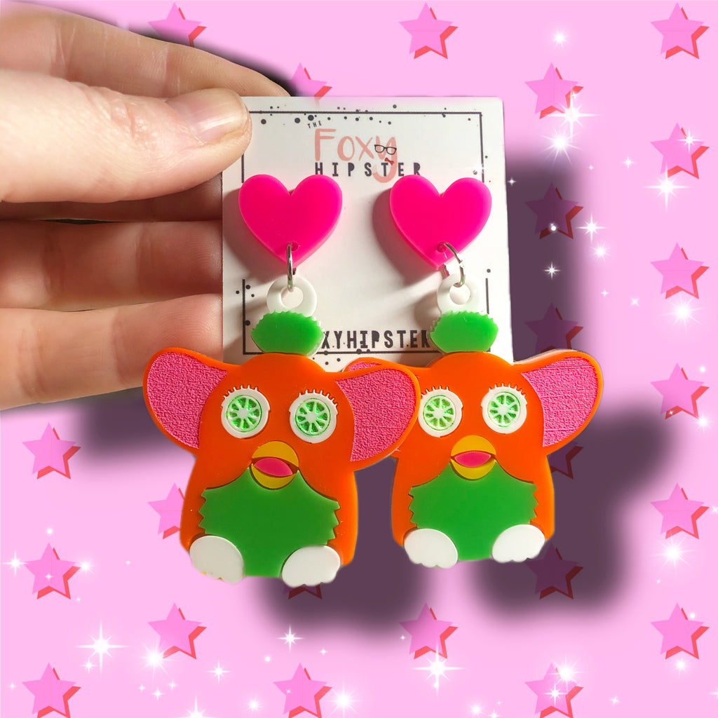 Furby Orange and Green Dangle Earrings